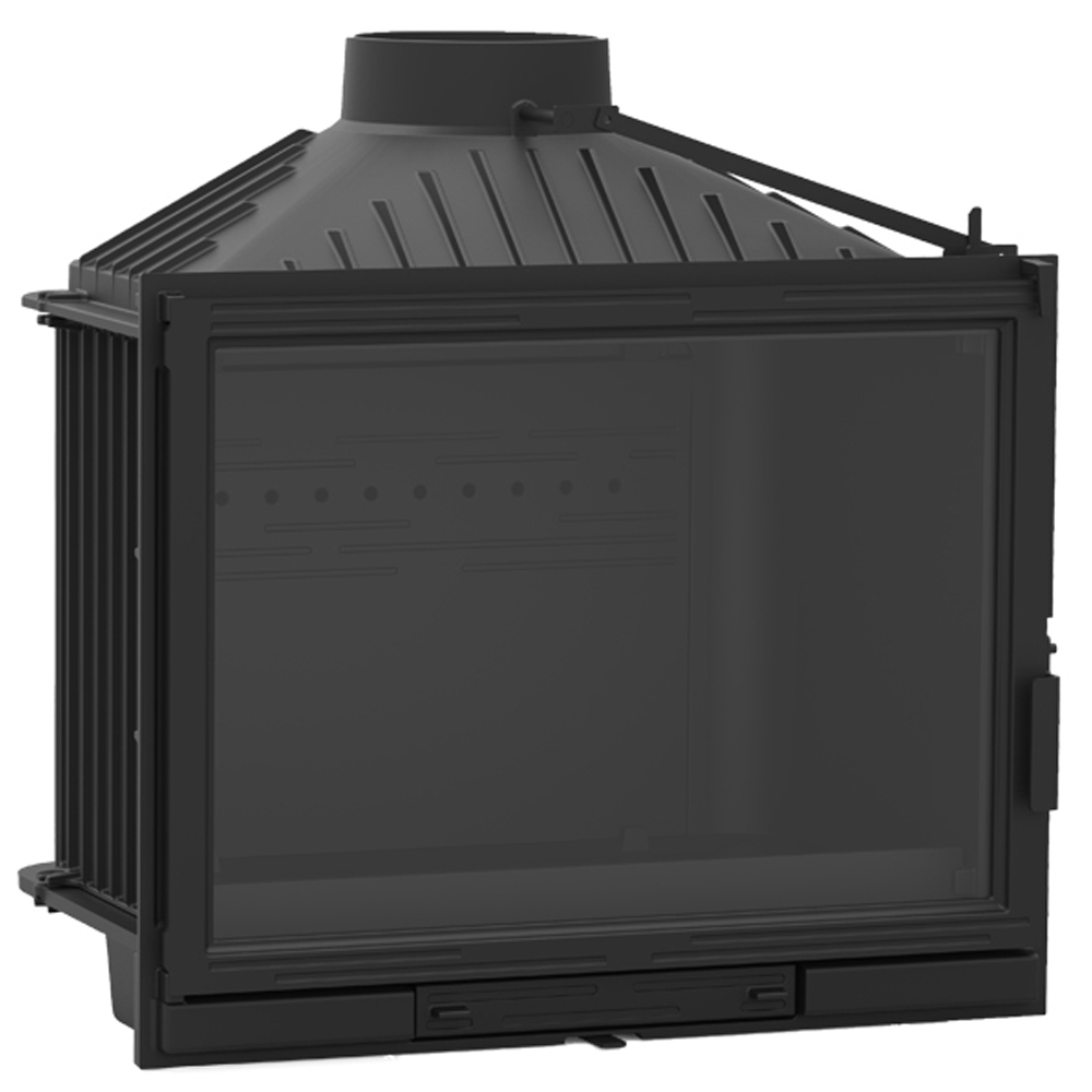 KFD ECO MAX 14D este un focar de ultima generatie, realizat integral din fonta. Optinal, acesta poate sa fie prevazut cu sistem suplimentar de reglare a tirajului (subar). Datorita principiului de constructie cu deflector si sistem de dubla combustie acest focar va ajuta sa reduceti considerabil consumul de lemne! Puterea nominala a acestuia este de 11.5 kW iar puterea lui maxima depaseste 16 kW, avand un randament de 82,5% fiind capabil sa incalzeasca un volum de 250mc. Acest focar pentru seminee pe lemne are 5 ani garantie.