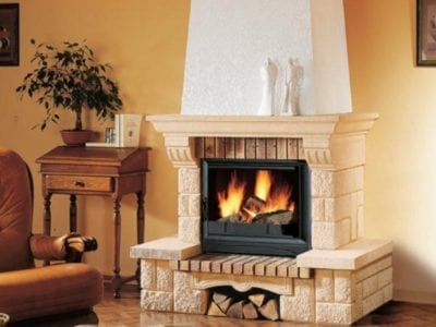 Finisajul acestui semineu de colt este realizat din piatra speciala petentata, Edelroc®, rezistenta la temperaturi inalte si caramida rosie. Piatra Edelroc® este disponibila pe nuanta...